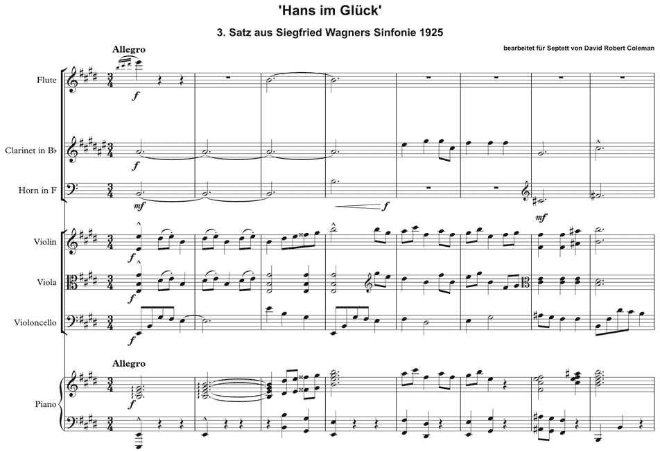 Siegfried Wagner: ›Hans im Glück‹, arr. für Klavierseptett von David Robert Coleman, 2025